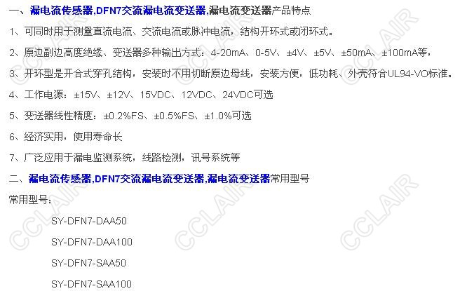 SY-DFN7-DAA500,SY-DFN7-DAA500B,SY-DFN7-DAA500C,SY-DFN7-DAA500D,DFN7交流漏電流變送器