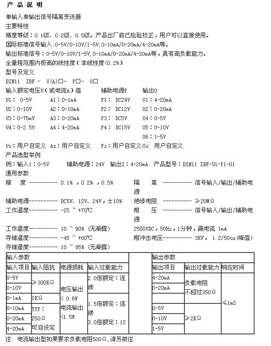 DIN11 IBF U2-P1,DIN11 IBF U2-P2,DIN11 IBF U2-P3,單輸入單輸出信號隔離變送器