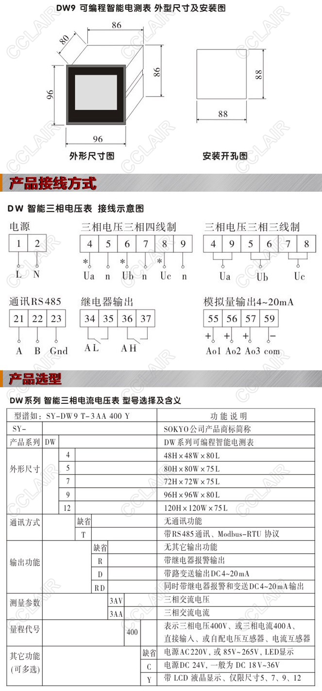 SY-DW9-3AV400,SY-DW9-3AV400C,SY-DW9-3AV400Y,DW9-3AV400,DW9三相數(shù)字電壓表