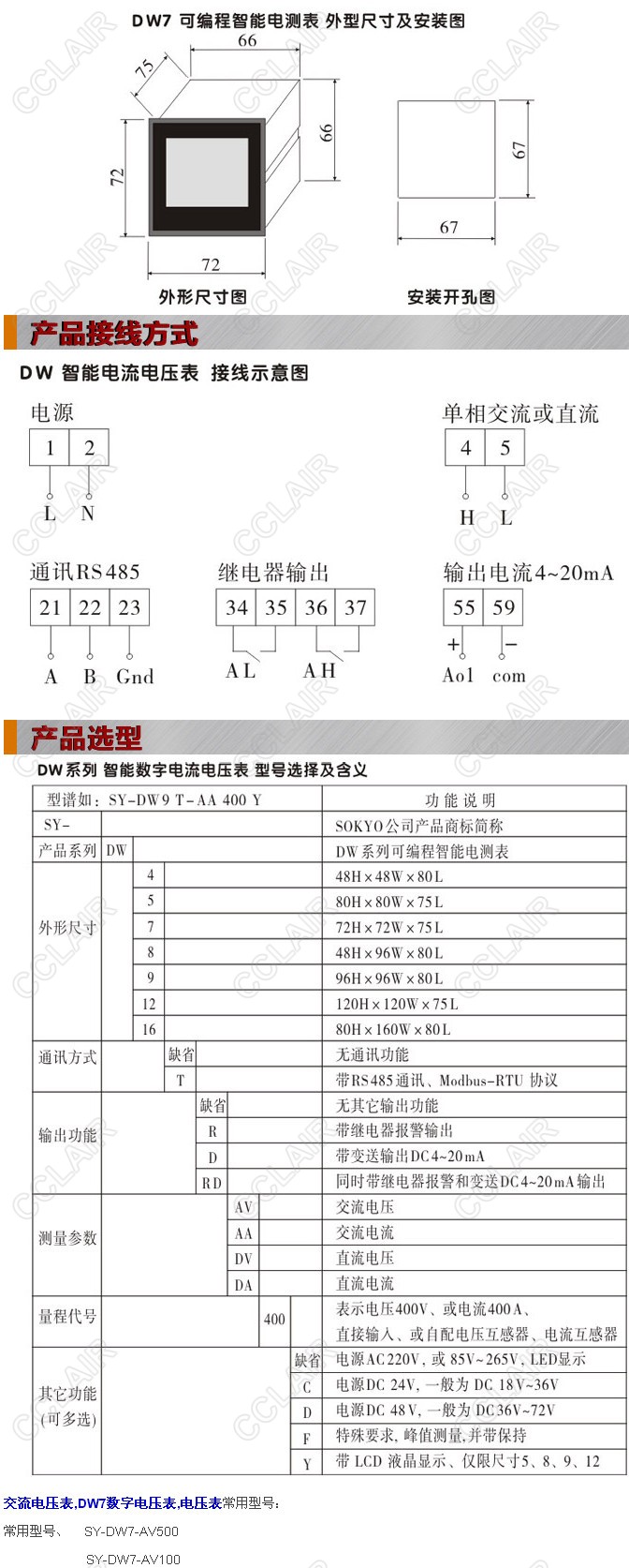 SY-DW7-AV400,SY-DW7-AV400C,SY-DW7-AV400D,DW7-AV400,DW7-AV400C,DW7數(shù)字電壓表