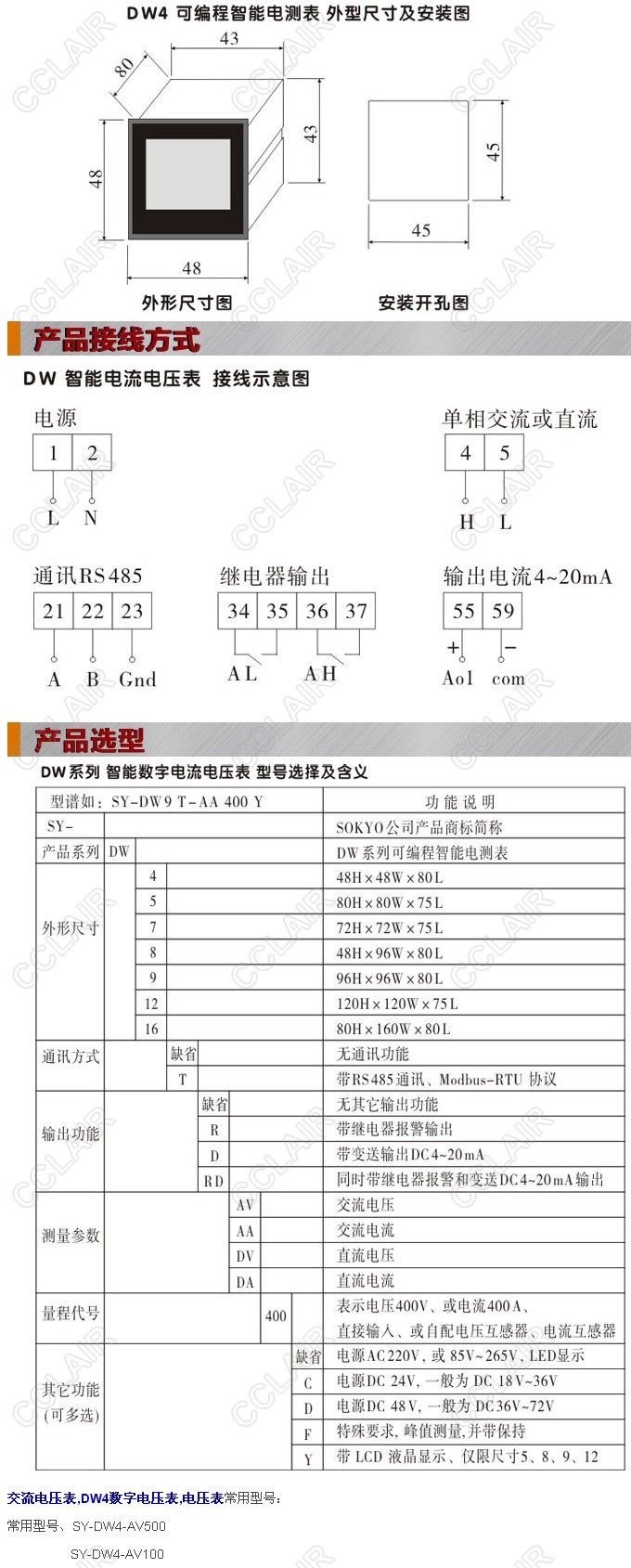 SY-DW4-AV400,SY-DW4-AV400C,SY-DW4-AV400D,DW4-AV400,DW4-AV400C,DW4數(shù)字電壓表
