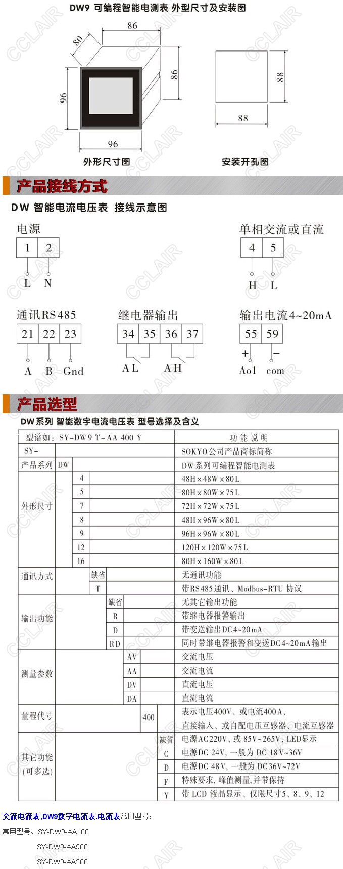 SY-DW9-AA400,SY-DW9-AA400C,DW9-AA400,DW9-AA400C,DW9-AA400D,DW9數(shù)字電流表