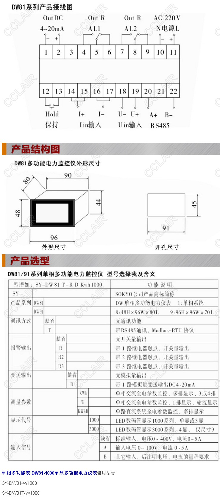 SY-DW81-W1000,SY-DW81-W2000,DW81-W1000,DW81-1000單顯多功能電力儀表