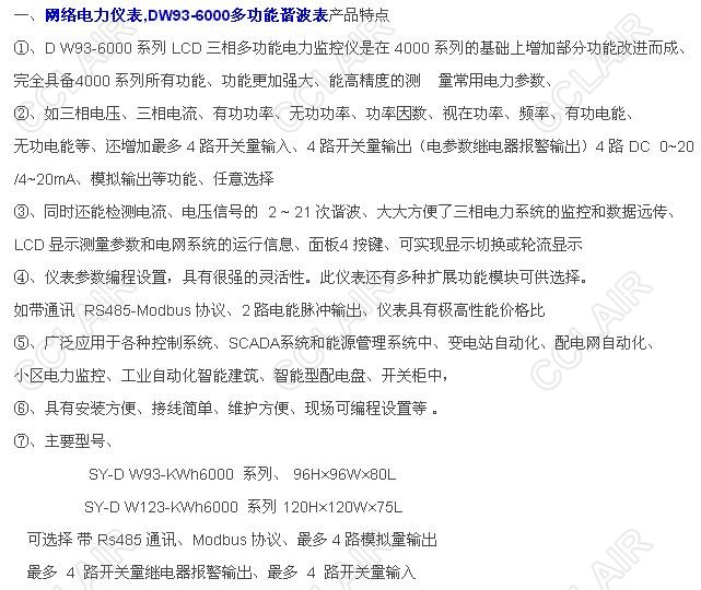 型號: SY-DW93-KWh6000,SY-DW93-DKWh6000,DW93-KWh6000,DW93-6000