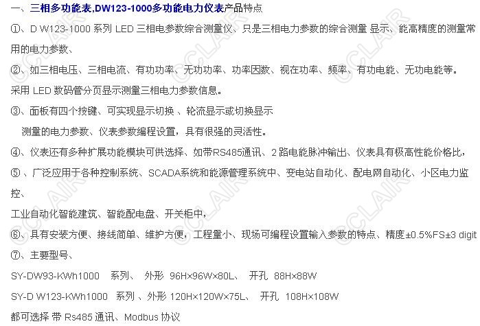 SY-DW123-KWh1000,SY-DW123T-KWh1000,DW123-KWh1000,DW123-1000多功能電力儀表
