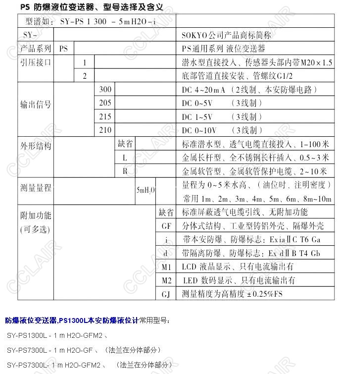 SY-PS1300L-1mH2O-GFM2,SY-PS7300L-1mH2O-GF,PS1300L-1mH2O-GFM2