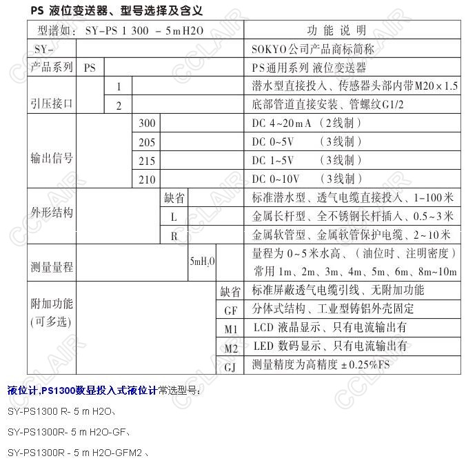 SY-PS1300R-5mH2O,SY-PS1300R-5mH2O-GF,PS1300R-5mH2O,