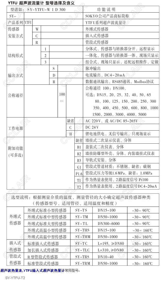 SY-YTFU-T2,SY-YTFU-C1S50,SY-YTFU-C1S100,SY-YTFU-C1S150,YTFU插入式超聲波熱量計