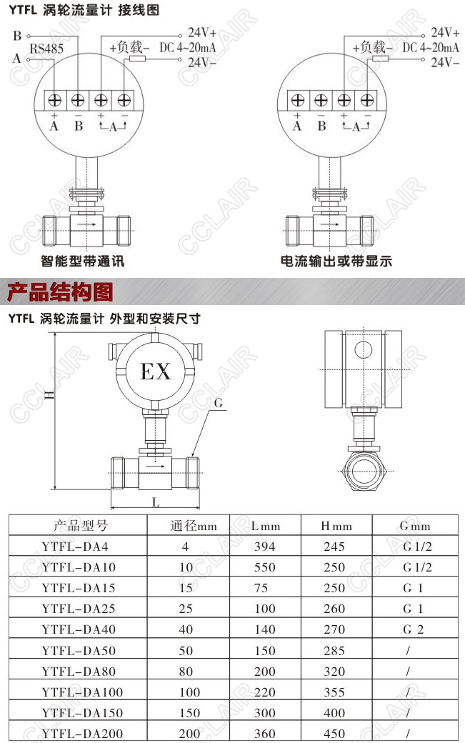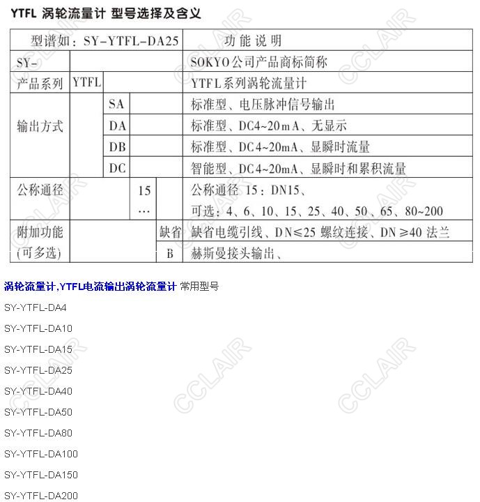 SY-YTFL-DA4,SY-YTFL-DA10,SY-YTFL-DA15,SY-YTFL-DA25,YTFL電流輸出渦輪流量計