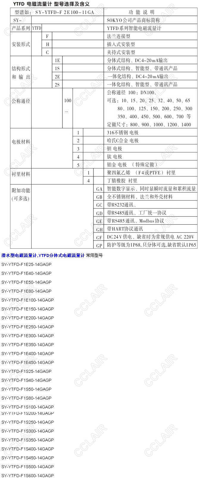 SY-YTFD-F1E25-14GAGP,SY-YTFD-F1E40-14GAGP,YTFD分體式電磁流量計(jì)