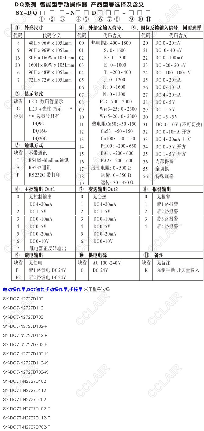 SY-DQ7-N2727D102,SY-DQ7-N2727D112,SY-DQ7-N2727D702,DQ7智能手動操作器,手操器