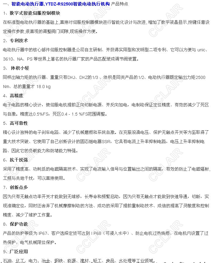 SY-YTDZ-RS2500,SY-YTDZ-RS2500-T,SY-YTDZ-RS2500-Q,YTDZ-RS2500智能電動執(zhí)行機構(gòu)