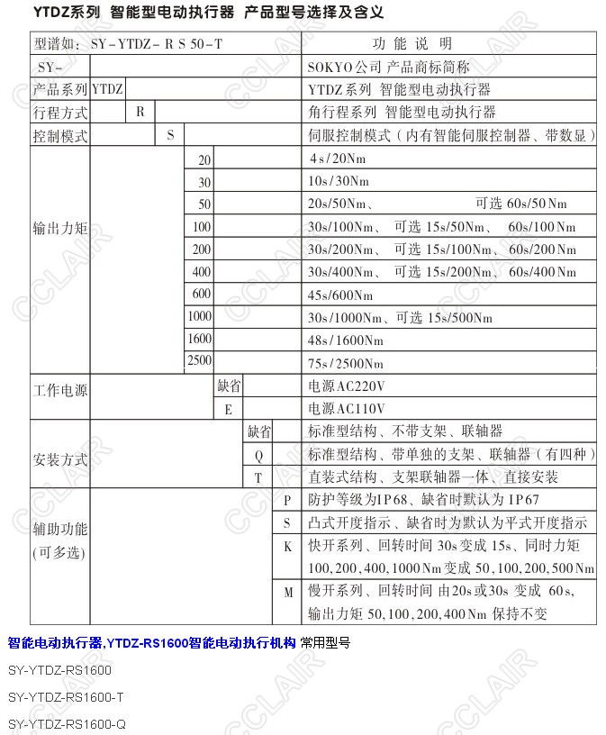 SY-YTDZ-RS1600,SY-YTDZ-RS1600-T,SY-YTDZ-RS1600-Q,YTDZ-RS1600智能電動執(zhí)行機構(gòu)