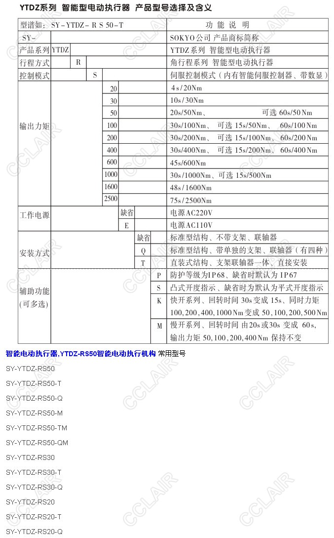 SY-YTDZ-RS50,SY-YTDZ-RS50-T,SY-YTDZ-RS50-Q,YTDZ-RS50智能電動執(zhí)行機構(gòu)