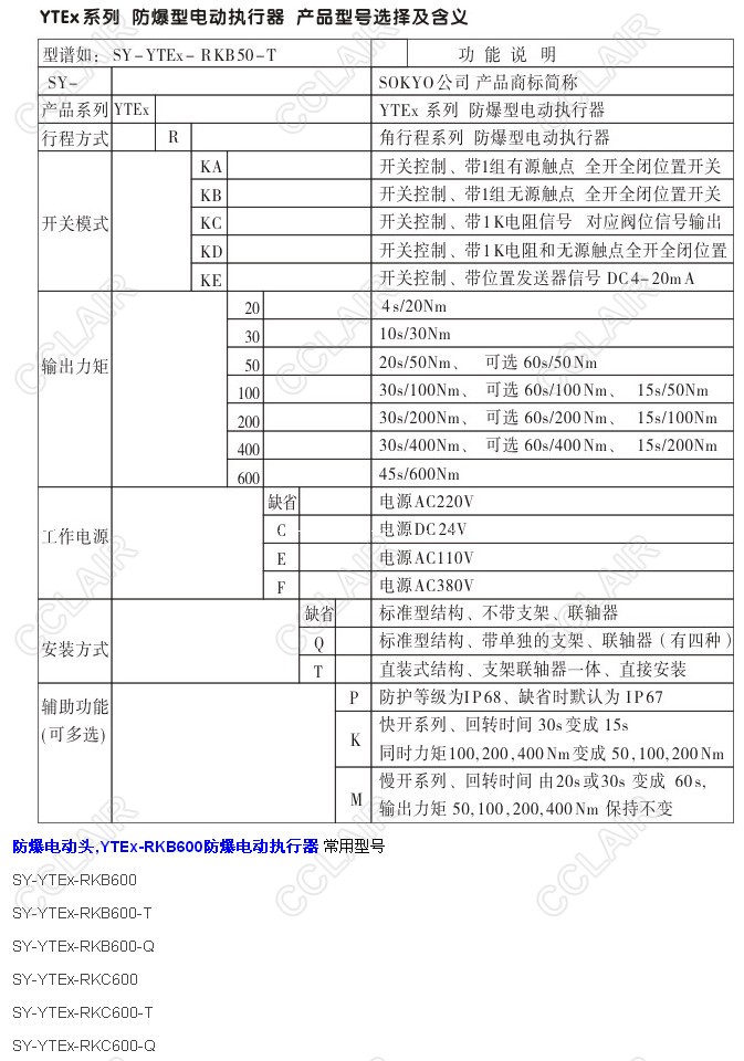 SY-YTEX-RKB600,SY-YTEX-RKB600-T,YTEX-RKB600防爆電動(dòng)執(zhí)行器