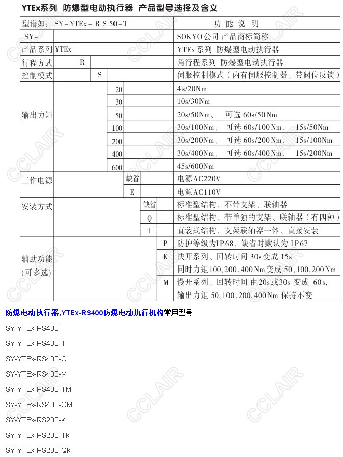 SY-YTEX-RS400,SY-YTEX-RS400-T,SY-YTEX-RS400-Q,YTEX-RS400防爆電動執(zhí)行機(jī)構(gòu)