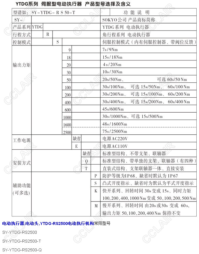 SY-YTDG-RS2500,SY-YTDG-RS2500-T,SY-YTDG-RS2500-Q,YTDG-RS2500電動(dòng)執(zhí)行機(jī)構(gòu)