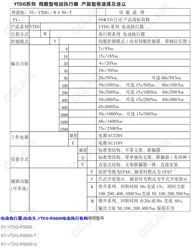 SY-YTDG-RS600,SY-YTDG-RS600-T,SY-YTDG-RS600-Q,YTDG-RS600電動(dòng)執(zhí)行機(jī)構(gòu)
