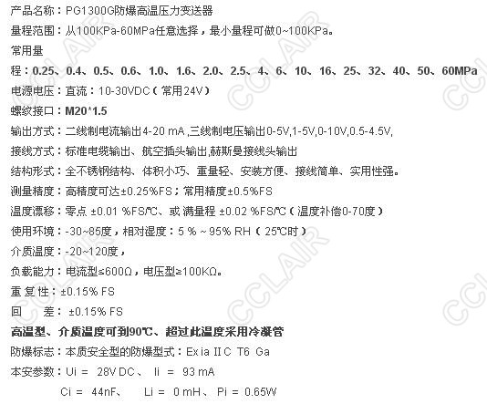 SY-PG1300Gi-1MPa,SY-PG1300Gi-2MPa,PG1300G防爆高溫壓力傳感器