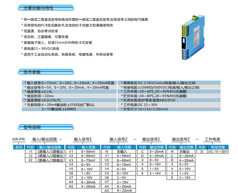 KR-PR,KR-PR11,KR-PR12,KR-PR22信號(hào)隔離分配器