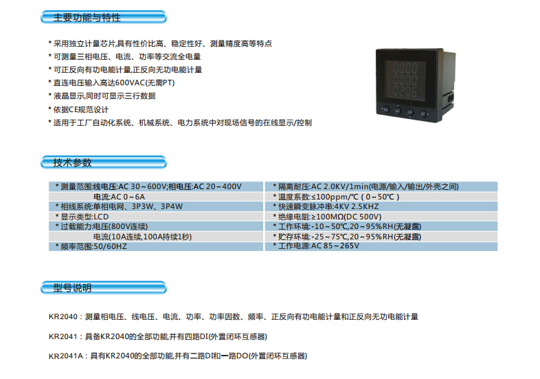 KR2040,KR2041,KR2041A智能三相綜合電力測控儀
