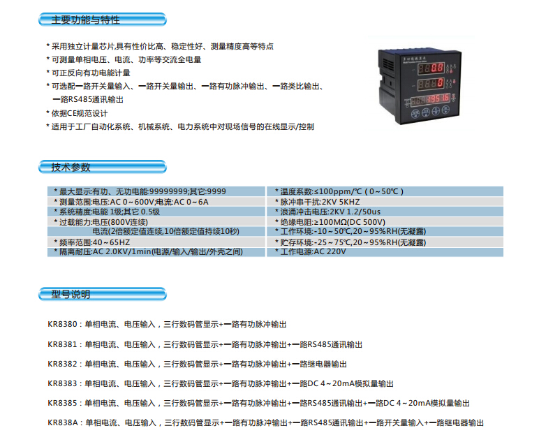 KR8380,KR8381,KR8382,KR8383,KR8385,KR838A單相多功能數(shù)顯表