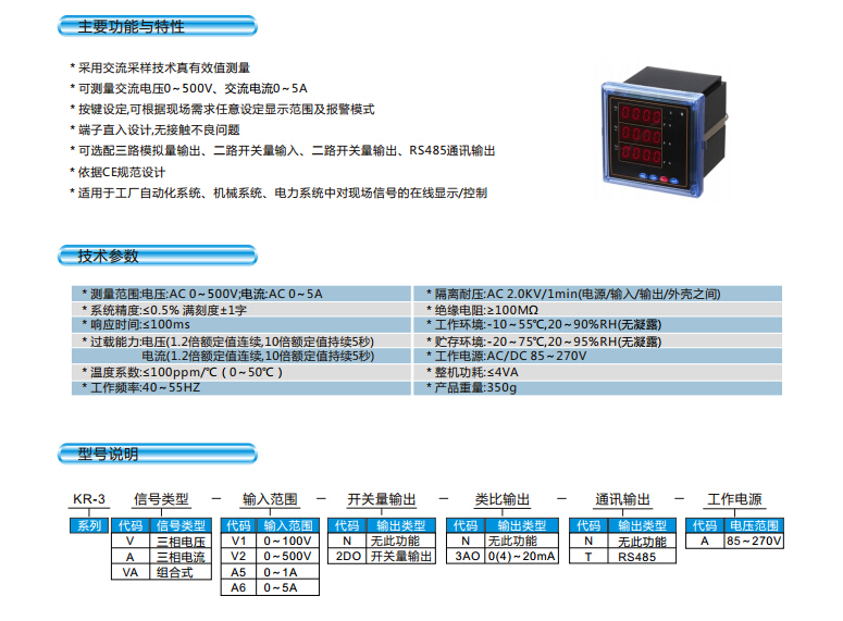 KR-3VA,KR-3VA-V1,KR-3VA-V2,KR-3VA-A5,KR-3VA-A6,智能三相電壓/電流表