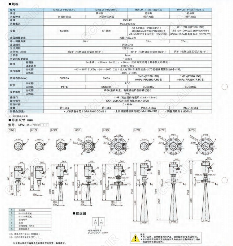 26GHz,MWLM-PR26,26GHz脈沖雷達(dá)式料位計(jì)(測(cè)量固體料位用)
