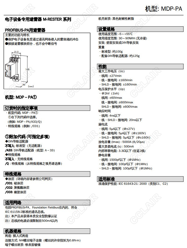 MDP-PA,MDP-PA/A33,MDP-PA/Q, PROFIBUS-PA用 插入型