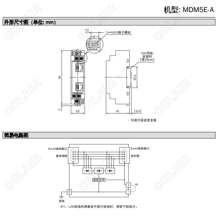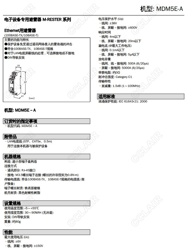 MDM5E-A,Ethernet用 100 BASE-TX/10 BASE-T避雷器