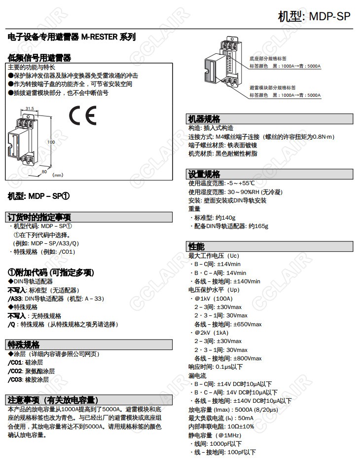 MDP-SP,MDP-SP/A33,MDP-SP/Q,低頻信號用 插入型避雷器