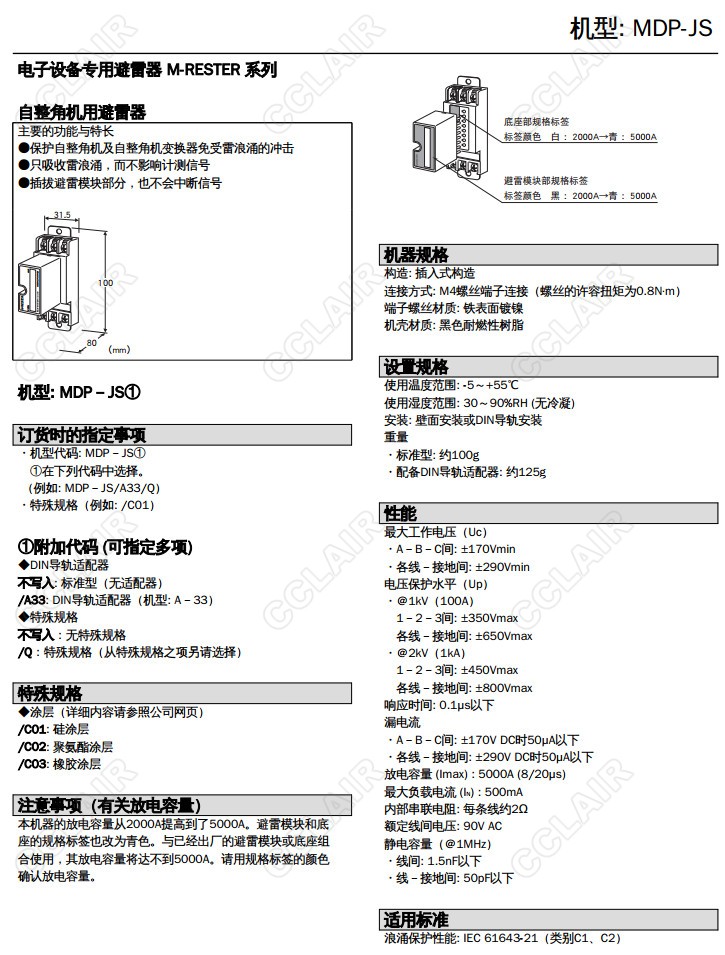 MDP-JS,MDP-JS/A33,MDP-JS/Q,自整角機用 插入型避雷器