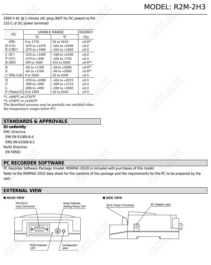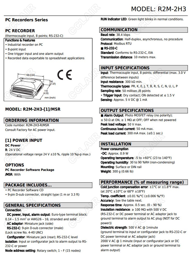 R2M-2H3,R2M-2H3-R/MSR,8點(diǎn) 熱電偶輸入 RS232 Modbus I/O 模塊