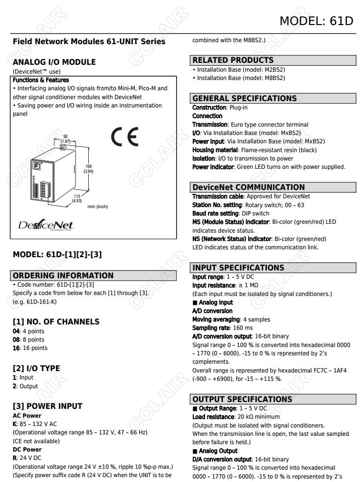 61D,61D-161-K,61D-041,61D-042,61D-081,61D-082,61D-161,61D-162,DeviceNet專用