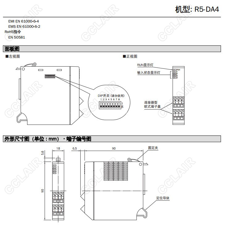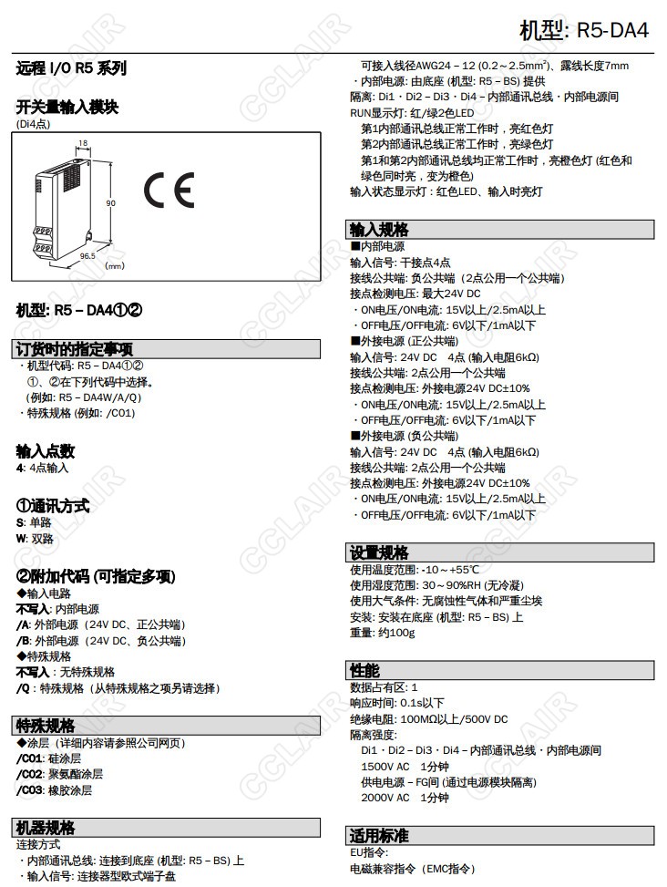 R5-DA4/R5T-DA4,R5-DA4W/A/Q,R5T-DA4W/A/Q,R5-DA4S/A/Q,Di 4點(diǎn) 接點(diǎn)輸入模