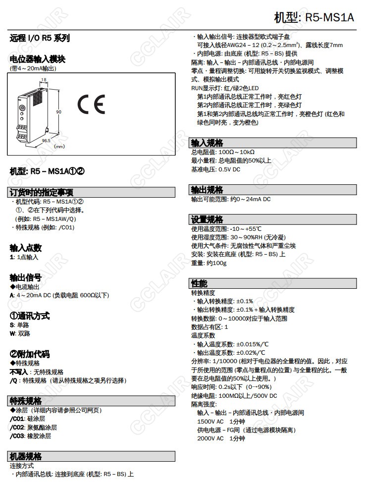 R5-MS1A,R5-MS1AW/Q,R5-MS1AS/Q,電位器信號(hào)輸入,輸入信號(hào)∶10