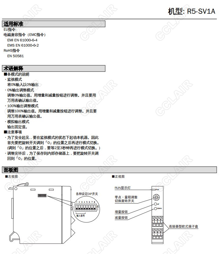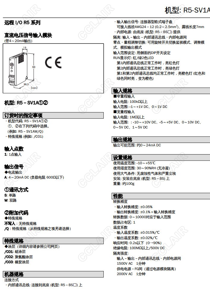 R5-SV1A,直流電壓信號(hào)輸入,輸入信號(hào)∶±10V, ±5V, ±1V, 0~10V, 0~5V, 1~5V, 0~1V,輸出信號(hào)∶DC4~20mA