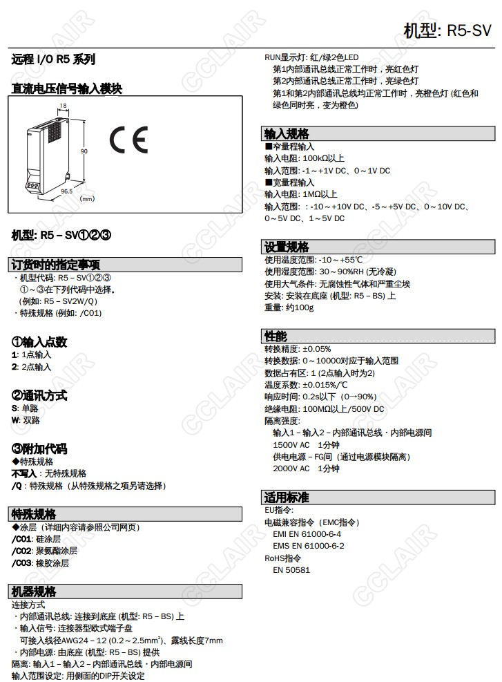 R5-SV/R5T-SV,R5-SV2W/Q,R5-SV1S,R5-SV1W,R5-SV2S,R5-SV2W,直流電壓信號(hào)輸入模塊