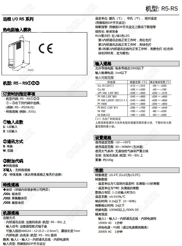 R5-RS/R5T-RS,R5-RS2W/Q,R5-RS1S,R5-RS1W,R5-RS2S,R5-RS2W,熱電阻信號輸入模塊