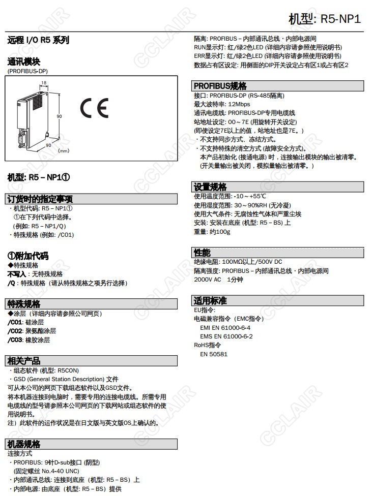 R5-NP1,R5-NP1/Q,R5-NP1/C01,R5-NP1/C02,R5-NP1/C03,PROFIBUS-DP通訊模塊