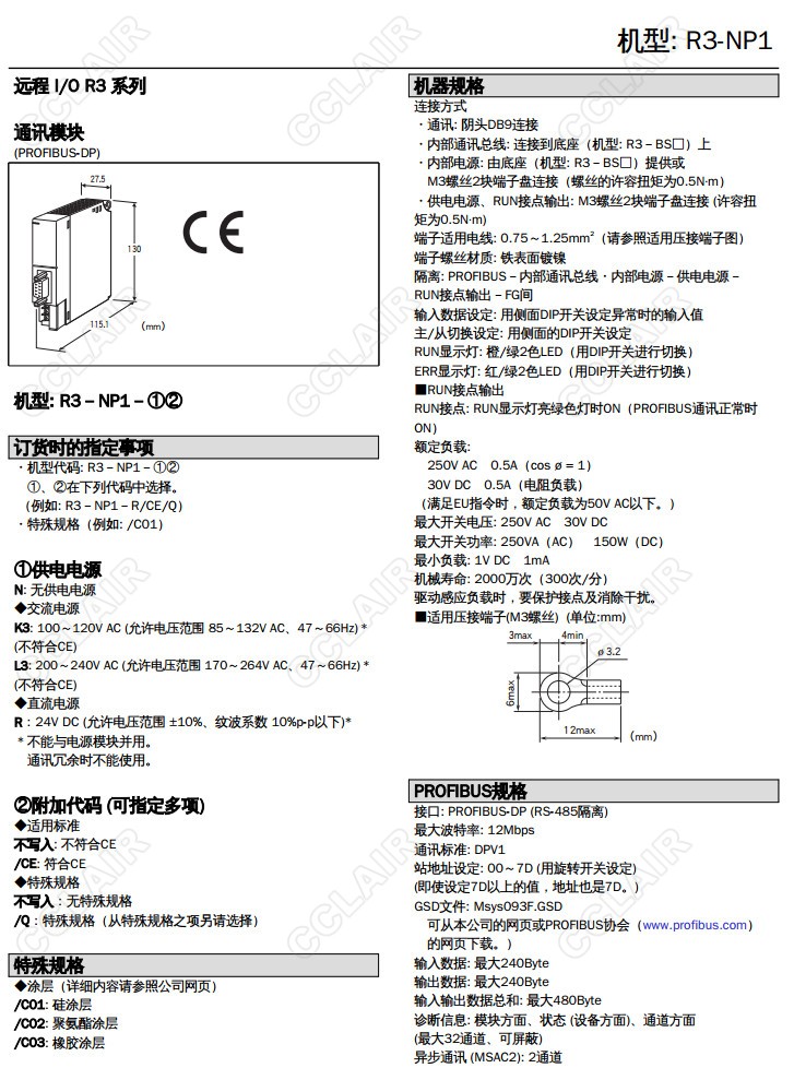 R3-NP1,R3-NP1-R/CE/Q,R3-NP1-N,R3-NP1-K3,R3-NP1-L3,PROFIBUS-DP通訊模塊