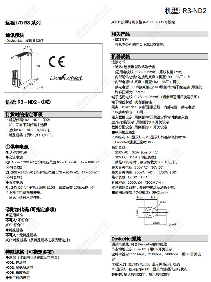 R3-ND2,R3-ND2-R/CE/Q,R3-ND2-N,R3-ND2-K3,DeviceNet 模擬量信號(hào) 32點(diǎn)通訊模塊R3-ND2-L3,R3-ND2-R,