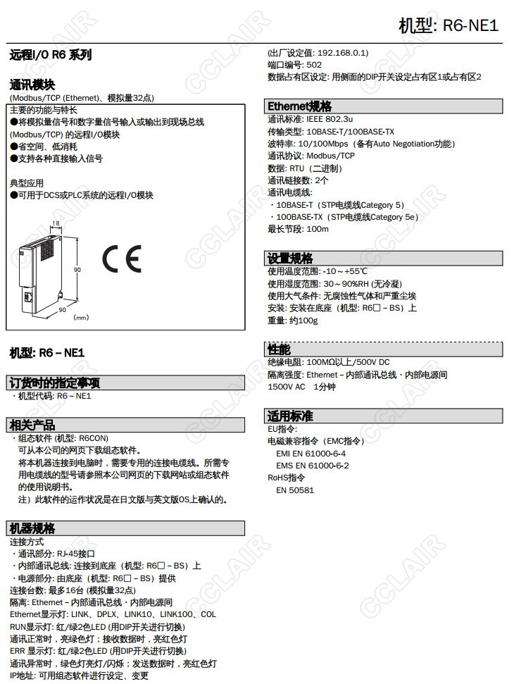 R6-NE1 Ethernet通訊模塊 Modbus/TCP,32點(diǎn)模擬量信號(hào)