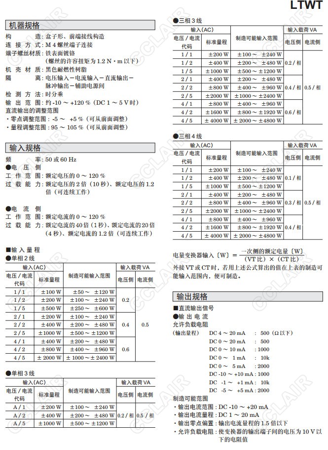 LTWT,LTWT-115A2-R,LTWT-2,LTWT-3,LTWT-4,有功功率信號變換器