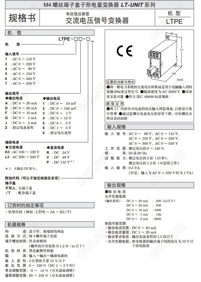 LTPE,LTPE-5A-K3/T,LTPE-1,LTPE-2,LTPE-4,LTPE-5,LTPE-6,LTPE-7,交流電壓信號變換器(有效值運算型)