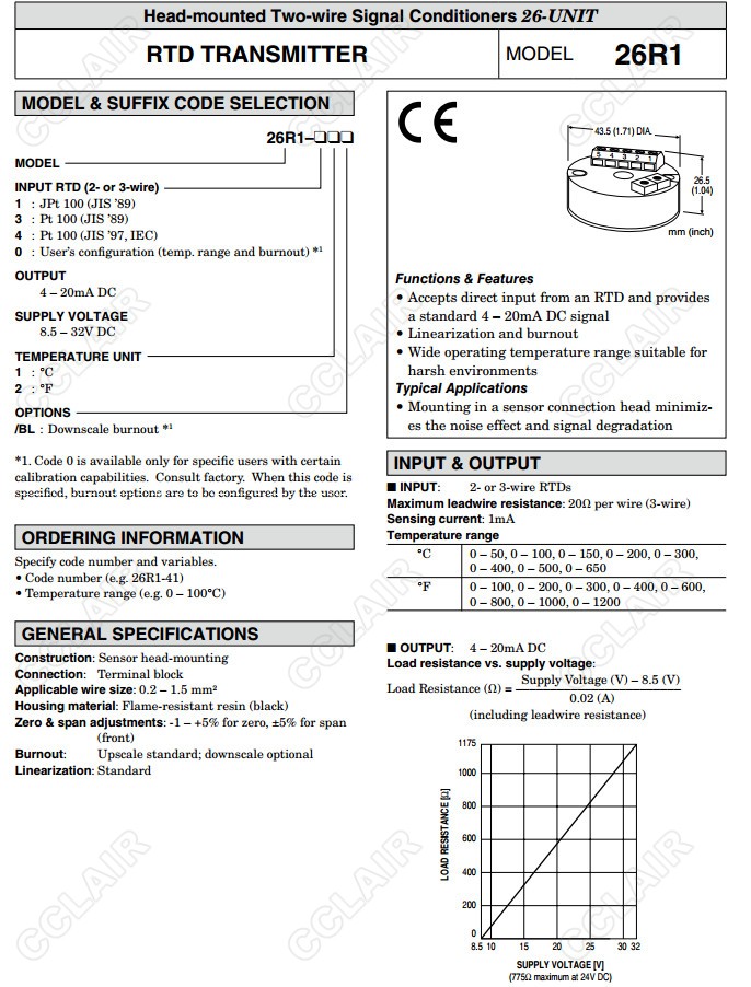 26R1,26R1-1,26R1-3,26R1-4,26R1-0,熱電阻信號(hào)變換器