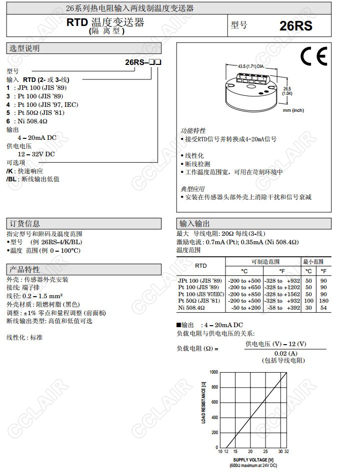 26RS,26RS-4/K/BL,26RS-1,26RS-3.26RS-4,26RS-5,26RS-6,熱電阻信號(hào)變換器(隔離)