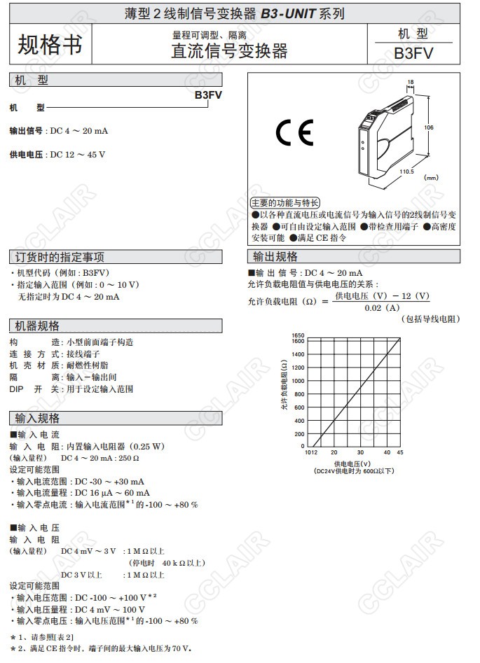 FV,直流信號(hào)變換器(量程可調(diào)型、隔離)