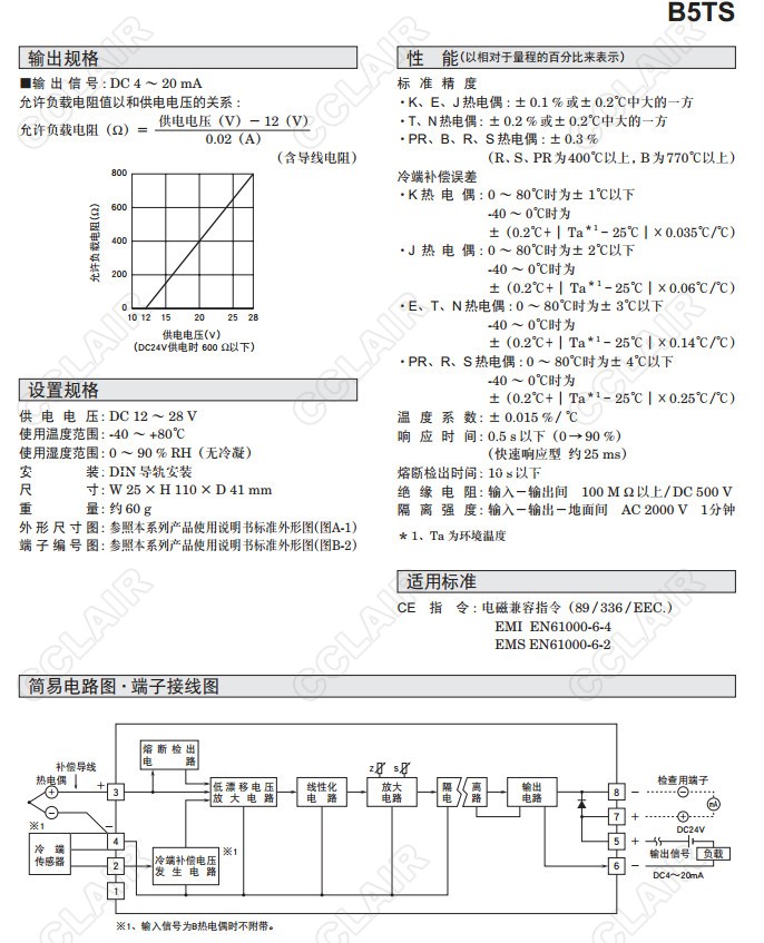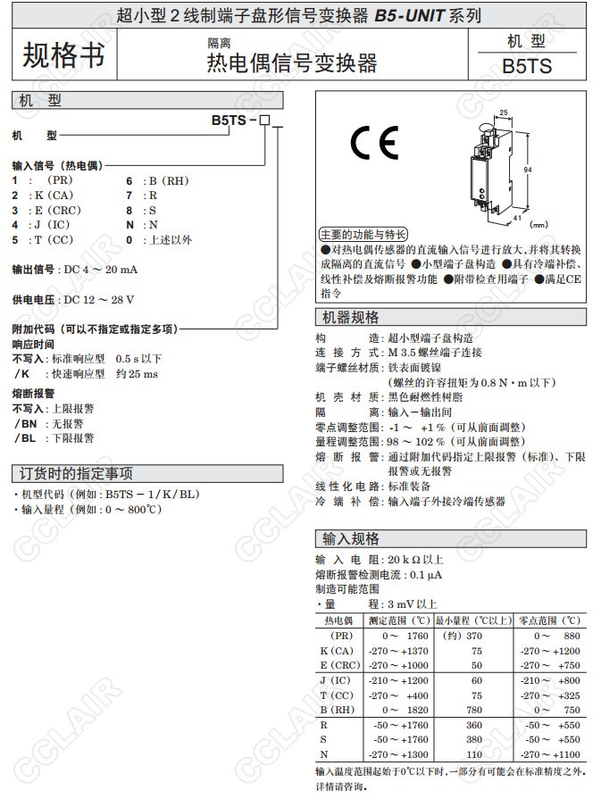 B5TS,B5TS-2A-R/K/BL,B5TS-1,B5TS-2,B5TS-3,B5TS-4,B5TS-5,B5TS-6熱電偶信號變換器(隔離)
