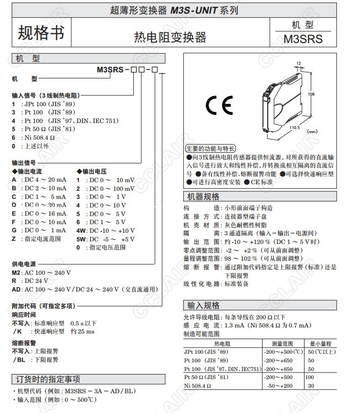 M3SRS,M3SRS-3A-AD/BL,M3SRS-1,M3SRS-3,M3SRS-4,M3SRS-5,M3SRS-6,M3SRS-0,熱電阻信號變換器